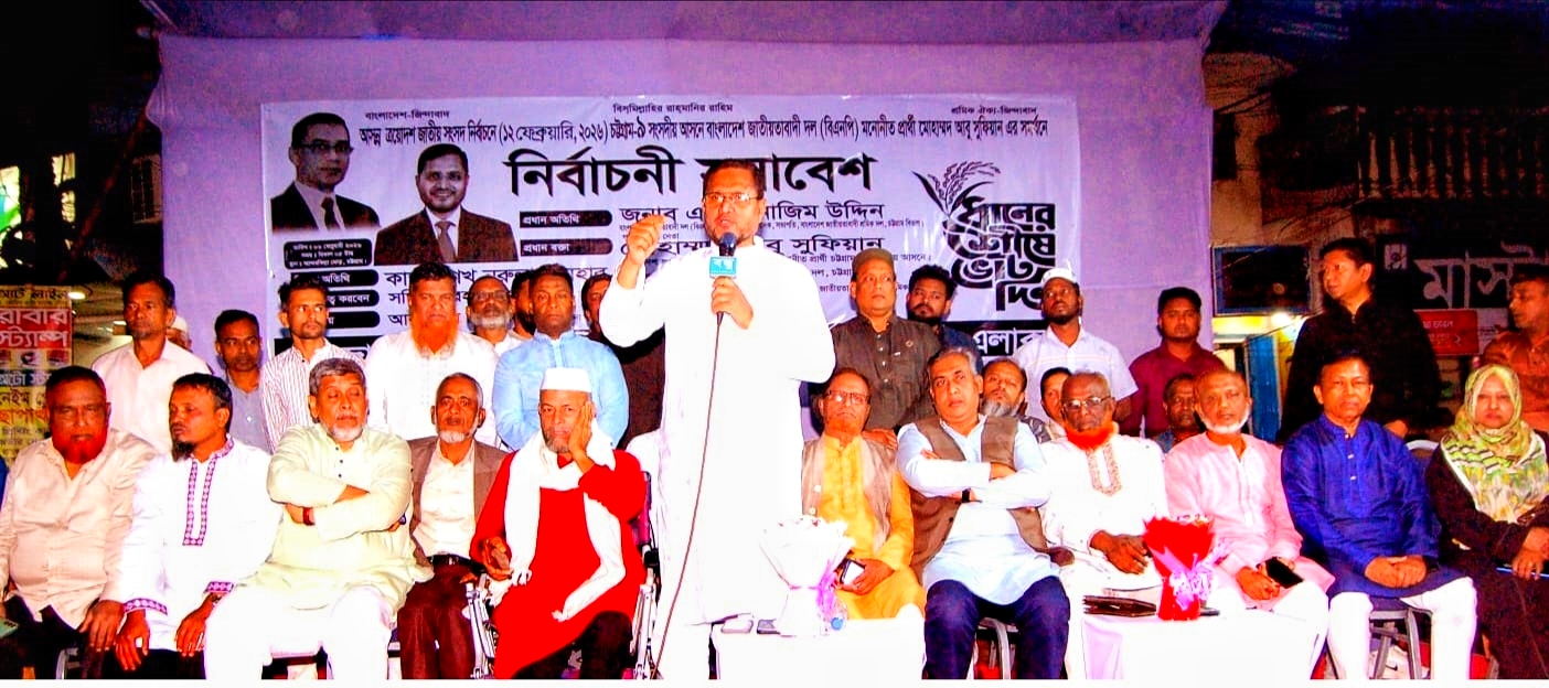 স্টাফ রিপোর্টার: চট্টগ্রাম-৯ আসনে বিএনপি মনোনীত প্রার্থী আবু সুফিয়ান বলেছেন, ধানের শীষ গণতন্ত্র ও ন্যায়ের প্রতীক। ধানের শীষ বিজয়ী হলে মানুষ শান্তিতে ও নিরাপদে থাকবে। সারাদেশে ব্যাপক উন্নয়ন সাধিত হবে।…(আরো বিস্তারিত)