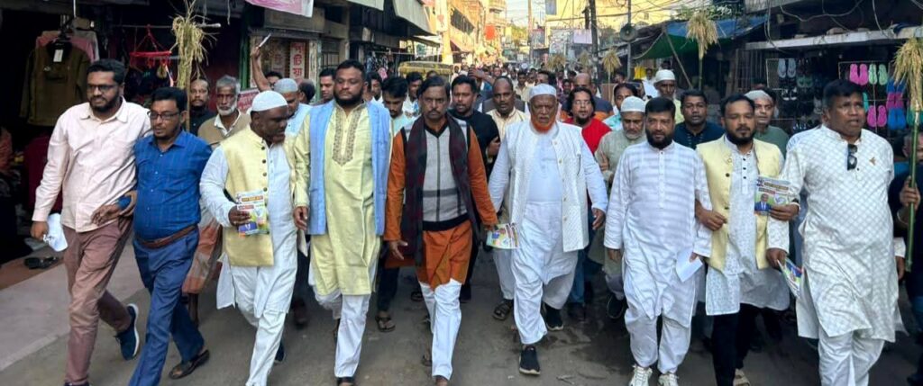 গণসংযোগকালে নেতাকর্মী- সমর্থকরা ধানের শীষের পক্ষে ভোট কামনা করে ৯নং ওয়ার্ডের বিভিন্ন পাড়া ও বাড়ি প্রদক্ষিণ করেন।