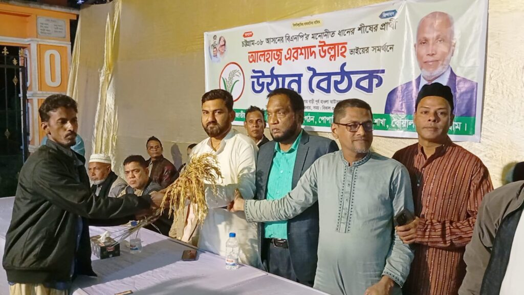 আসন্ন জাতীয় সংসদ নির্বাচনকে সামনে রেখে চট্টগ্রাম-৮ (বোয়ালখালী- চান্দগাঁও) আসনে বিএনপি মনোনীত ধানের শীষের প্রার্থী এরশাদ উল্লাহর সমর্থনে বোয়ালখালী উপজেলার ৬নং পোপাদিয়া ইউনিয়নের ৭নং ওয়ার্ড বিএনপি ও অঙ্গ সংগঠনের উদ্যােগে উঠান বৈঠক অনুষ্ঠিত হয়েছে।