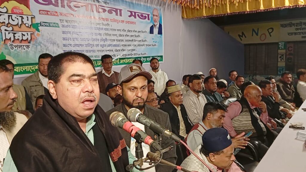 বৃহস্পতিবার (১৮ ডিসেম্বর) সন্ধ্যায় মহান বিজয় দিবস উপলক্ষে খরণদ্বীপ বহুমুখী উচ্চ বিদ্যালয় মাঠে শ্রীপুর- খরণদ্বীপ ইউনিয়ন বিএনপি ও অঙ্গসংগঠন আয়োজিত আলোচনা সভায় প্রধান অতিথির বক্তব্যে তিনি এসব কথা বলেন।