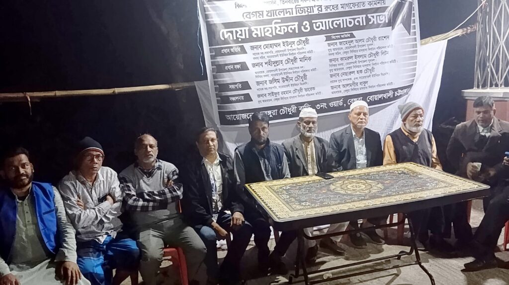 খালেদা জিয়ার রুহের মাগফেরাত কামনায় বোয়ালখালীর বেঙ্গুরা চৌধুরী বাড়িতে দোয়া মাহফিল