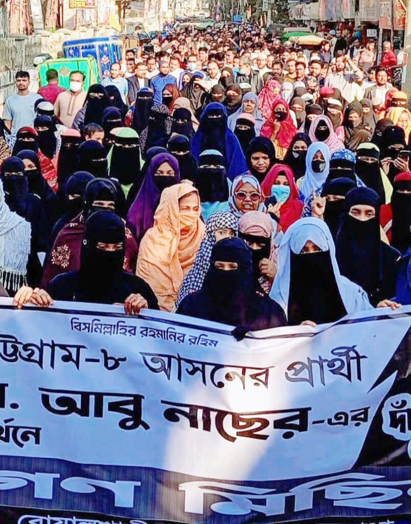 চট্টগ্রাম-৮ আসনে জামায়াত মনোনীত প্রার্থী ডা. আবু নাছেরের সমর্থনে গণ মিছিল করেছেন দাঁড়িপাল্লা প্রতীকের সমর্থকরা।
